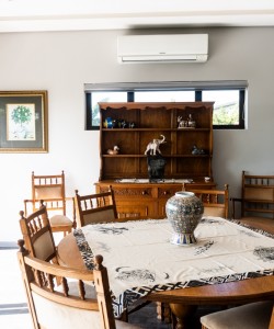 Escape to the view offers an idyllic retreat for families or discerning guests seeking tranquility and respite. This meticulously appointed two-bedroom cottage boasts modern finishes, soaring ceilings, and stunning lighting, creating an atmosphere of warm and comfortable abundance. A private balcony showcases stunning views, complementing a spacious dining area ideal for intimate gatherings. A fully equipped kitchen featuring premium appliances including a double-door refrigerator, microwave, dishwasher, gas stove, electric oven, and an outdoor gas Weber grill. The cottage comprises a bathroom with a shower, a separate guest toilet, a master bedroom with a queen-sized bed and lounge suite, and a second bedroom furnished with two single beds. Entertainment is facilitated through a smart TV with unlimited Wi-Fi access, while bath towels are thoughtfully provided. Guests are welcome to login to their own Netflix or bring their own DSTV de-coder for their convenience. Situated on the same grounds as the owners’ residence, guests benefit from access to the pool and enjoy dedicated private access and parking for two vehicles, ensuring both convenience and privacy throughout their stay.