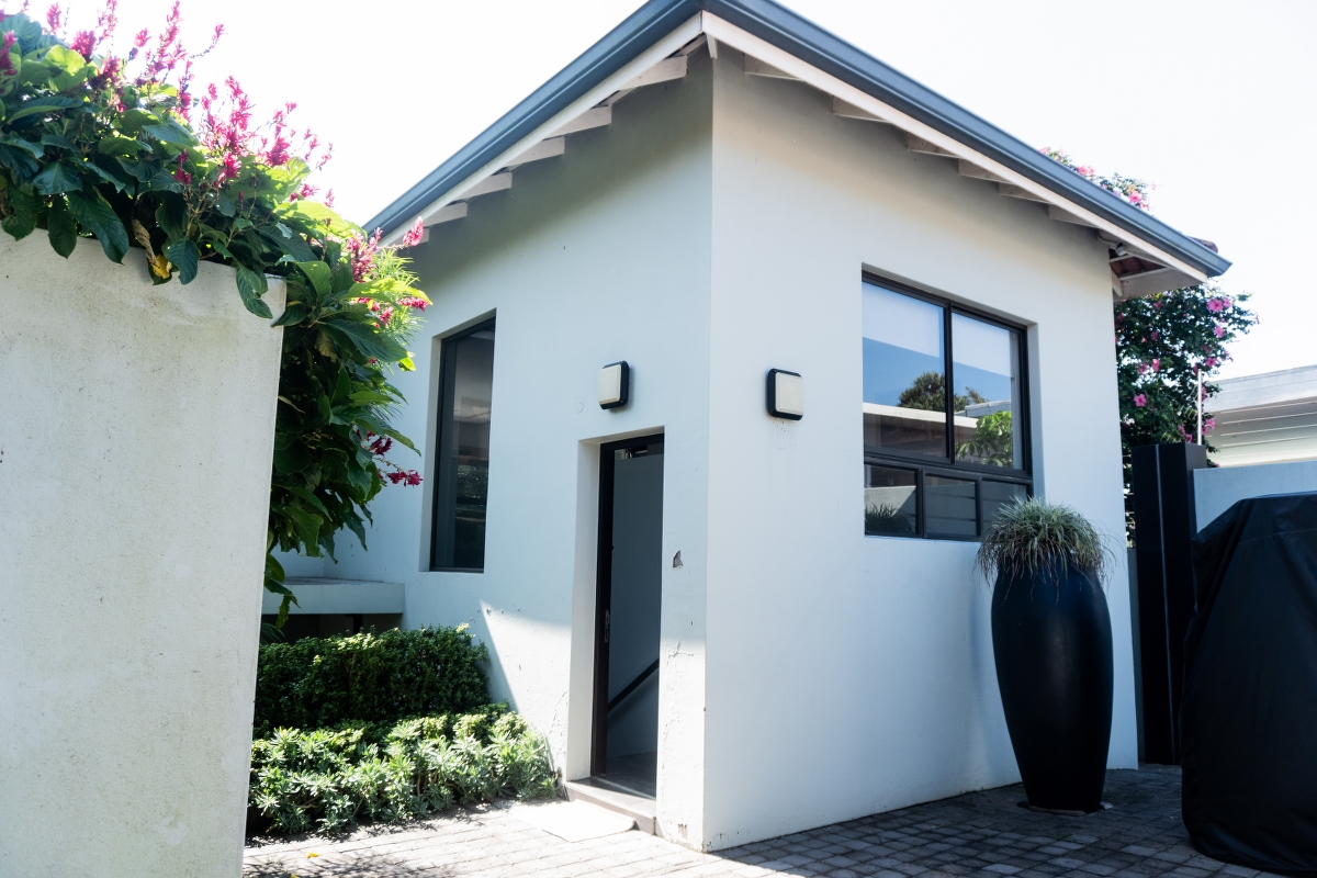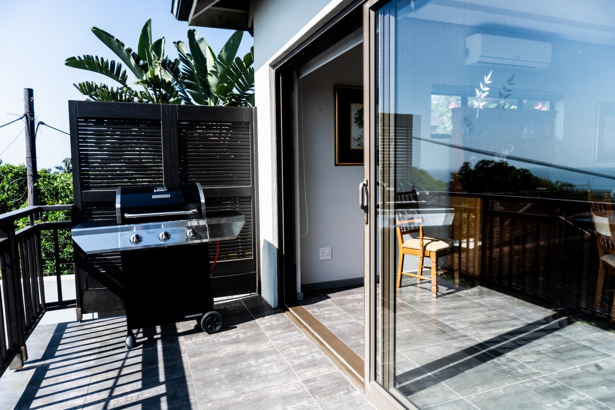 Escape to the view offers an idyllic retreat for families or discerning guests seeking tranquility and respite. This meticulously appointed two-bedroom cottage boasts modern finishes, soaring ceilings, and stunning lighting, creating an atmosphere of warm and comfortable abundance. A private balcony showcases stunning views, complementing a spacious dining area ideal for intimate gatherings. A fully equipped kitchen featuring premium appliances including a double-door refrigerator, microwave, dishwasher, gas stove, electric oven, and an outdoor gas Weber grill. The cottage comprises a bathroom with a shower, a separate guest toilet, a master bedroom with a queen-sized bed and lounge suite, and a second bedroom furnished with two single beds. Entertainment is facilitated through a smart TV with unlimited Wi-Fi access, while bath towels are thoughtfully provided. Guests are welcome to login to their own Netflix or bring their own DSTV de-coder for their convenience. Situated on the same grounds as the owners’ residence, guests benefit from access to the pool and enjoy dedicated private access and parking for two vehicles, ensuring both convenience and privacy throughout their stay.