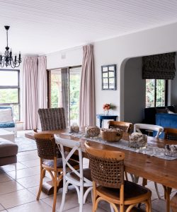 House of Mercy is a charming three-bedroom, freestanding residence, featuring two sleeper couches that offer additional space for children in the additional lounge, as well as in the open-plan dining and main lounge areas. Comfortably accommodating 10 guests. The house is equipped with two bathrooms—one fitted with a bath and shower, while the other is an en suite. The main bedroom boasts the en suite bathroom, complete with the luxurious walk-in shower.Enjoy unlimited Wi-Fi, a smart TV, and a lovely deck perfect for entertaining while overlooking the tropical beauty of Zinkwazi Beach, all just a short stroll from the beach.The accommodation features a washing machine, tumble dryer, and dishwasher to ensure convenience for guests.Guests are welcome to bring their own Weber grill, or for the discerning chef, a gas stove is available for preparing delightful meals. Experience tranquility and peace at House of Mercy, where a sense of home is guaranteed. We would be delighted to host you and your family! We gladly welcome pets and encourage you to bring your furry companions. Please make arrangements in advance to ensure a seamless experience for you and your pet.