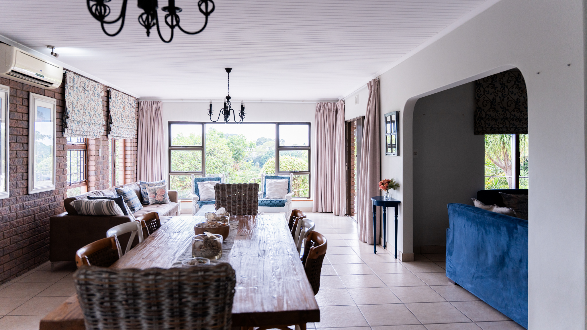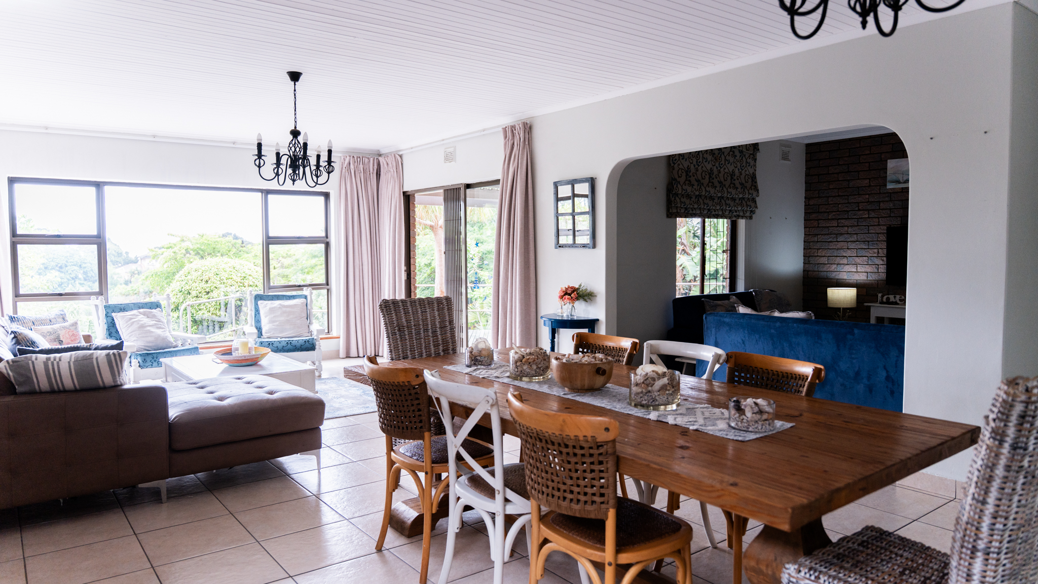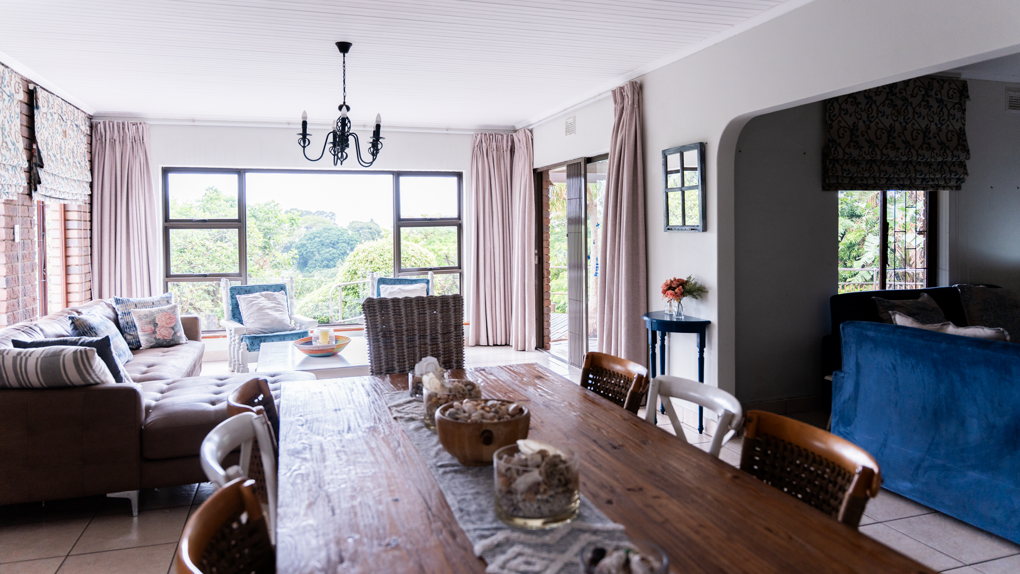 House of Mercy is a charming three-bedroom, freestanding residence, featuring two sleeper couches that offer additional space for children in the additional lounge, as well as in the open-plan dining and main lounge areas. Comfortably accommodating 10 guests. The house is equipped with two bathrooms—one fitted with a bath and shower, while the other is an en suite. The main bedroom boasts the en suite bathroom, complete with the luxurious walk-in shower.Enjoy unlimited Wi-Fi, a smart TV, and a lovely deck perfect for entertaining while overlooking the tropical beauty of Zinkwazi Beach, all just a short stroll from the beach.The accommodation features a washing machine, tumble dryer, and dishwasher to ensure convenience for guests.Guests are welcome to bring their own Weber grill, or for the discerning chef, a gas stove is available for preparing delightful meals. Experience tranquility and peace at House of Mercy, where a sense of home is guaranteed. We would be delighted to host you and your family! We gladly welcome pets and encourage you to bring your furry companions. Please make arrangements in advance to ensure a seamless experience for you and your pet.